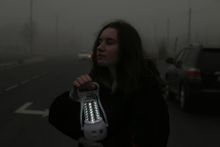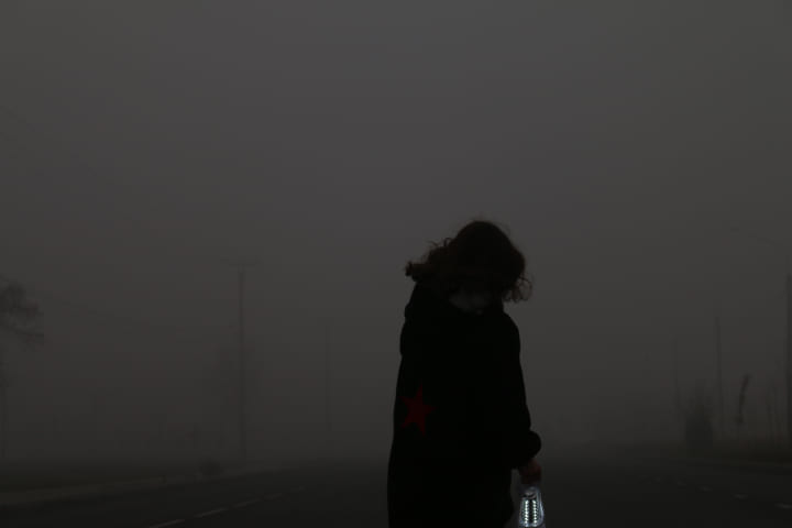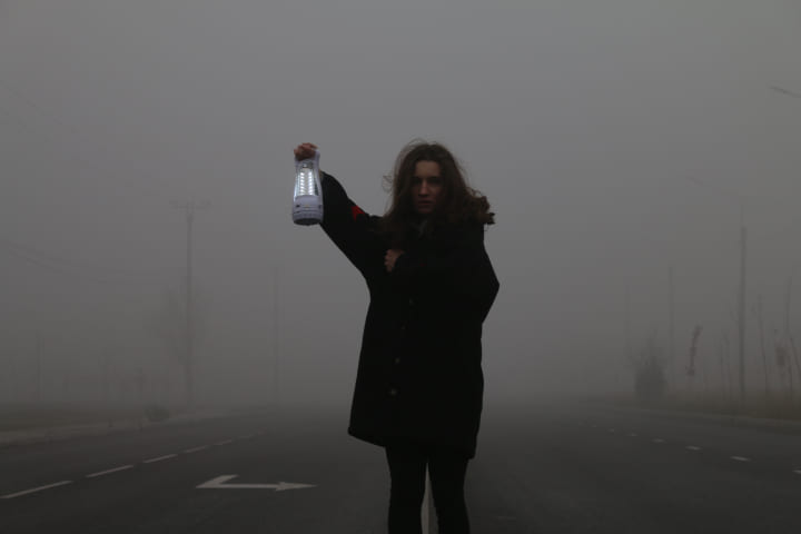 As if in her own mind, the main character wanders through an empty and foggy city in an attempt to escape from the past and find a way out of the abyss of internal suffering.